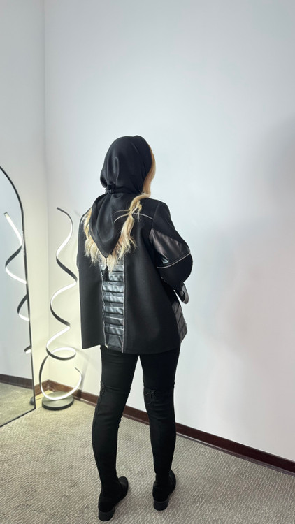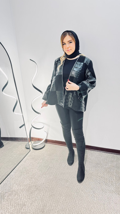 کت تلفیق چرم و فوتر کوبیده قد 80
