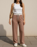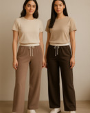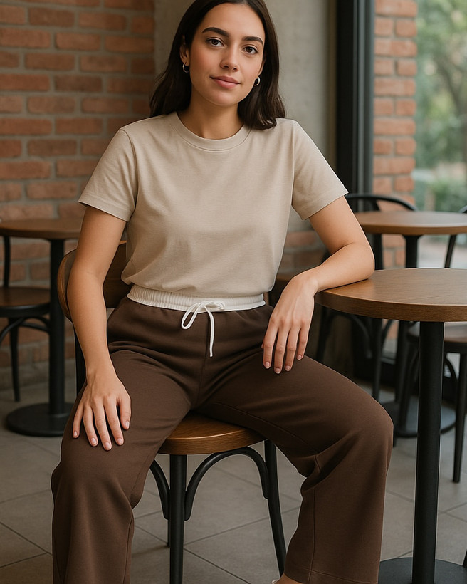 ورق بزن راحتی به سبک شیک وقتی یه شلوار ساده، با یه جزئیات سفید، کل استایلتو خاص میکنه. شیک بودن همیشه سخت نیست. یه شلوار لطیف، یه رنگ عمیق، یه کمر متفاوت—همینه! وقتی دنبال راحتی بدون افت استایل میگردی. نسکافهایِ و قهوه ای خوشفرم با کمربند سفید.